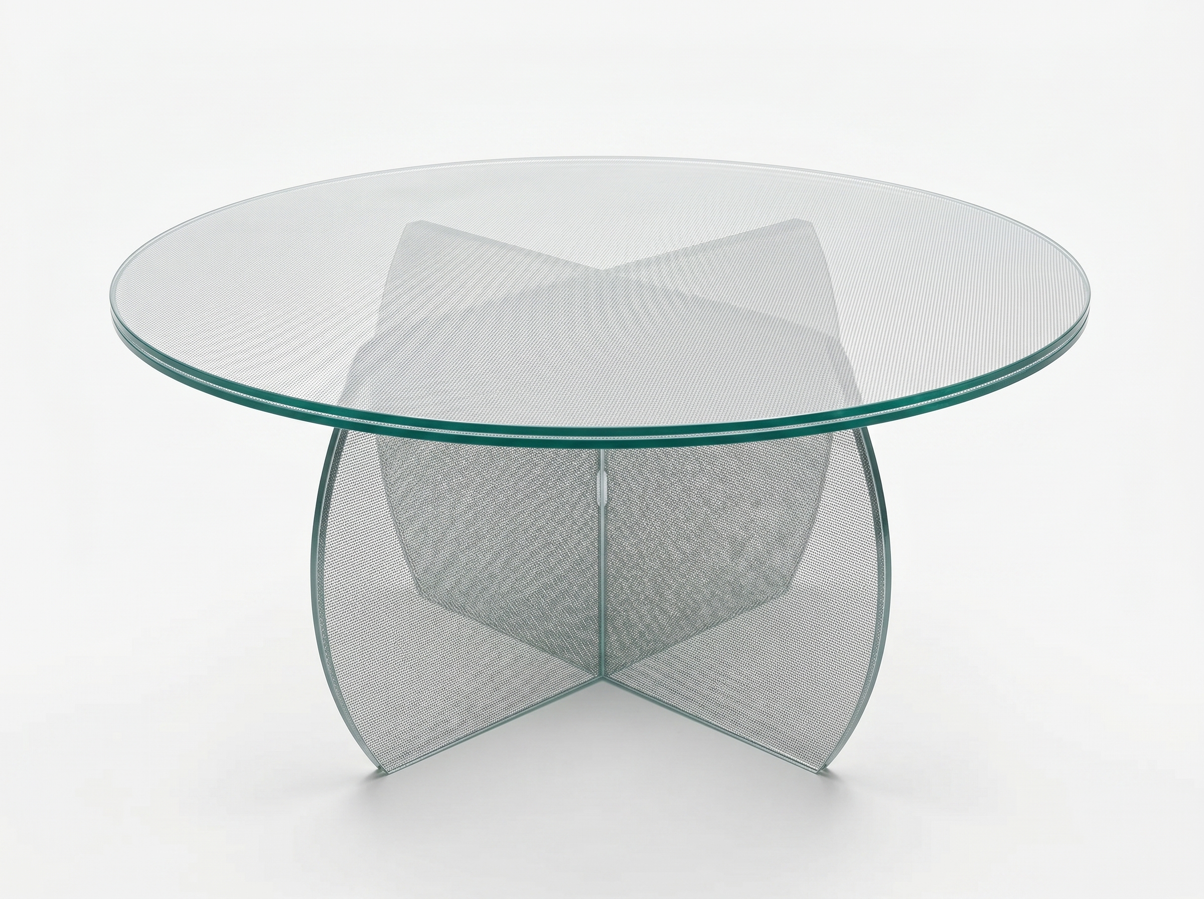 Луна — журнальный стол, в котором холодное сияние металла и прозрачность стекла соединяются в утонченный арт-объект. Серебряная сетка, заключенная внутри стекла, словно тонкий след лунного света, придает поверхности глубину, мерцание и благородный характер.